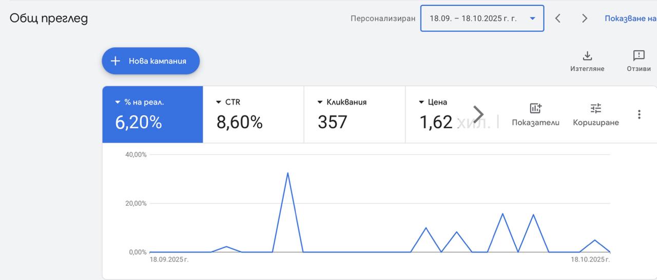 Със CTR от 8.6% и конверсия над 6%, кампанията не просто показа ефективност, а доказа, че когато стратегията и посланието са точни, дори малък локален бизнес може да мисли като национален бранд.